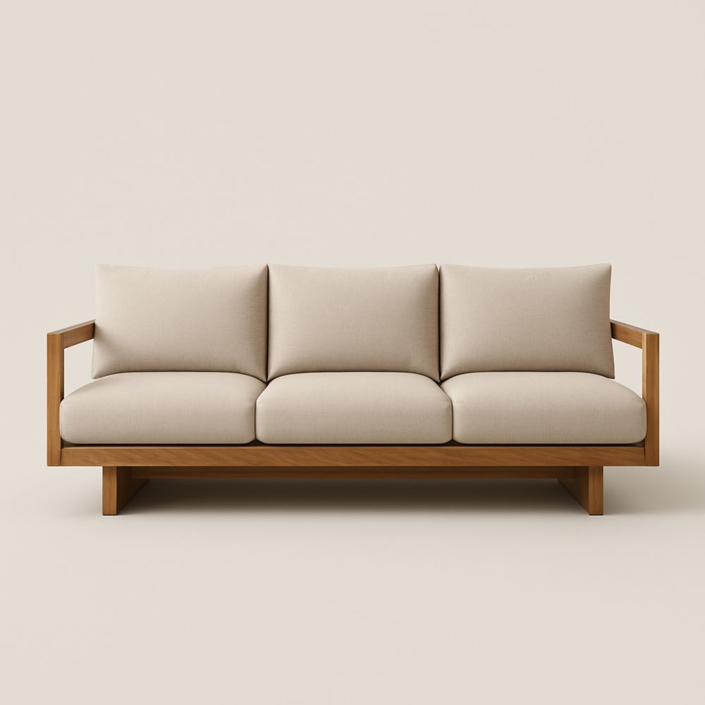 Canapé 3 Places Beige en Polyester avec Rembourrage en Mousse de 200 cm