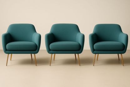 Ensemble de 3 fauteuils en tissu polyester vert avec pieds en métal doré
