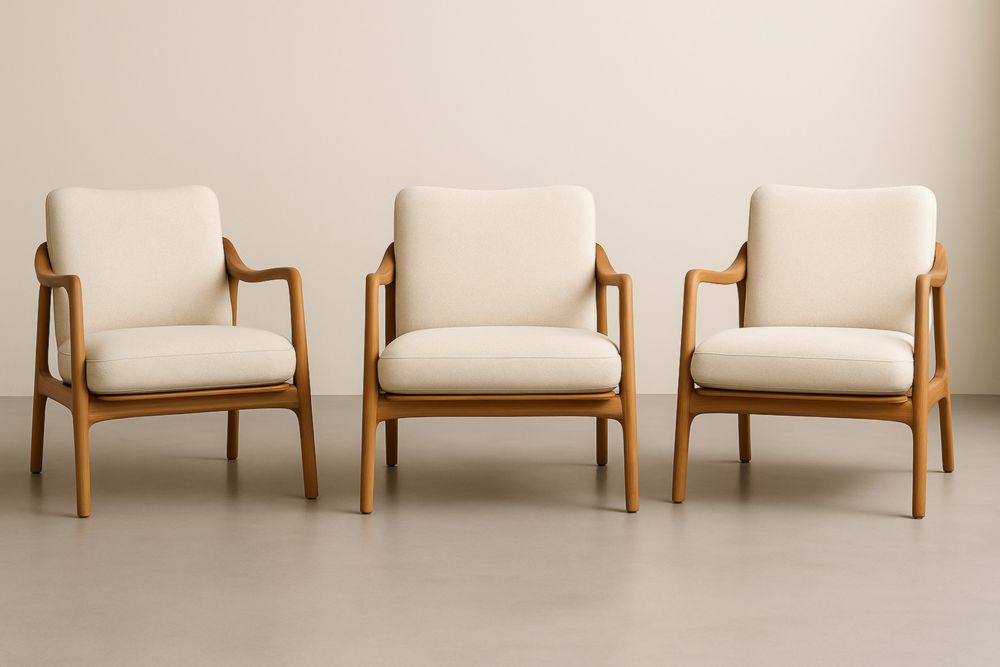 Ensemble de fauteuils en bois et tissu beige